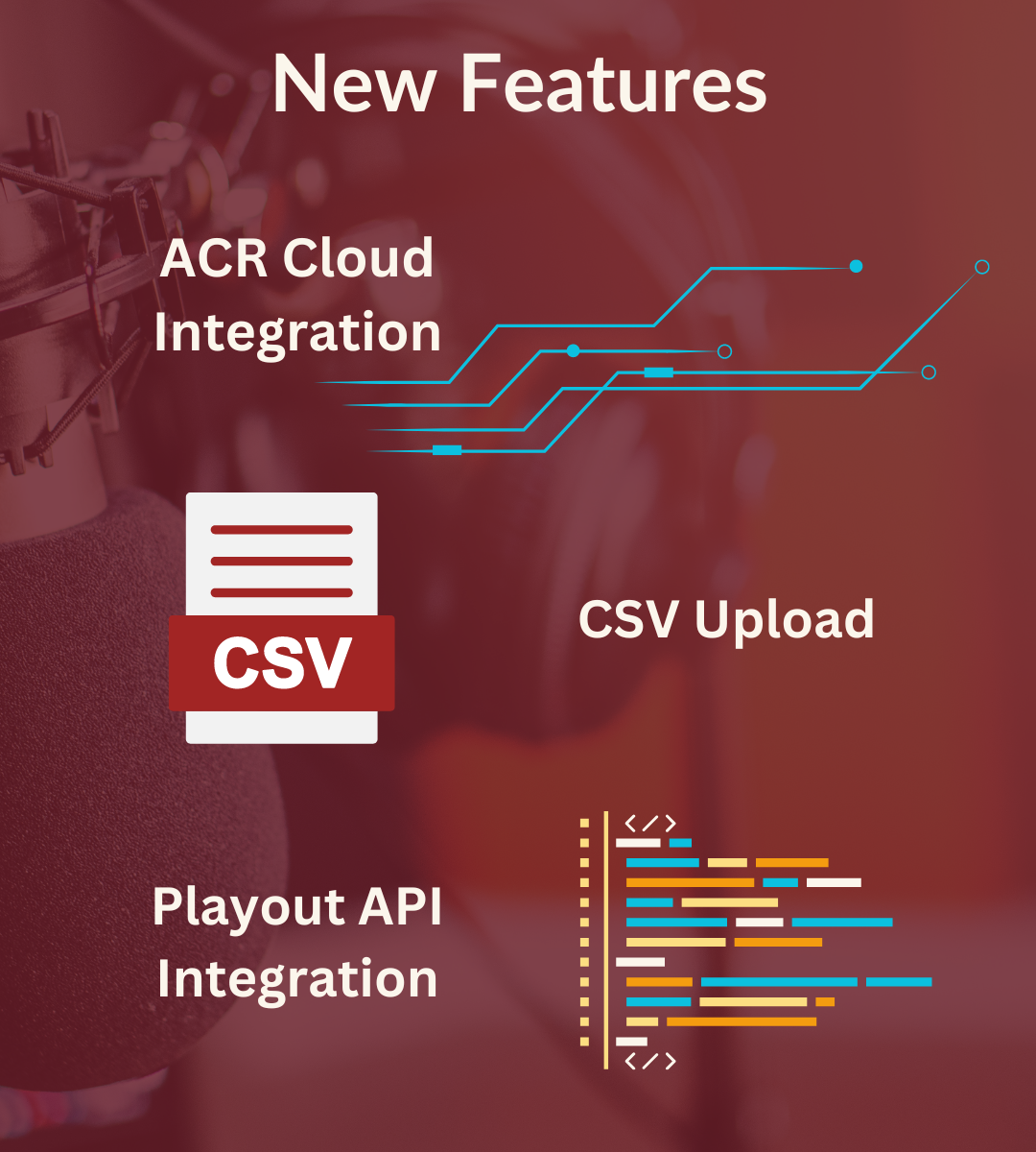 We have some excellent new features including ACR Cloud integration, CSV file upload for ease of log updating and the ability for customized tie ins to APIs from playout software.